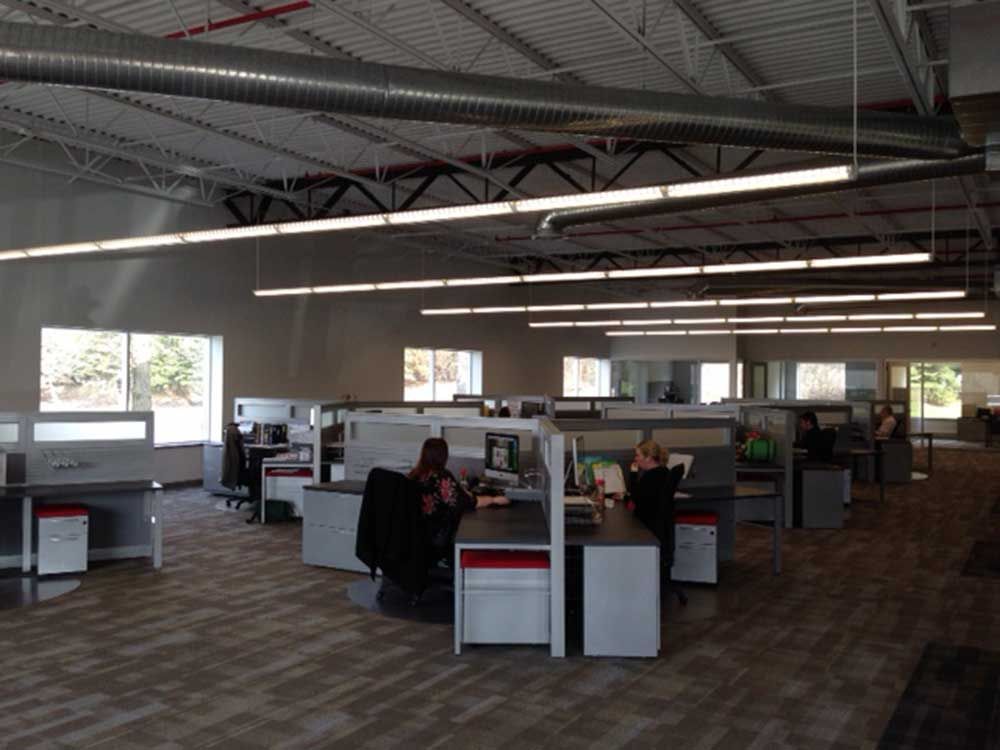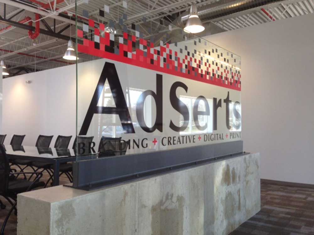 Adserts, Brookfield, Wisconsin: A new corporate location for a print advertising company. The finished project enhances the creative atmosphere in what was once a retail shoe store.