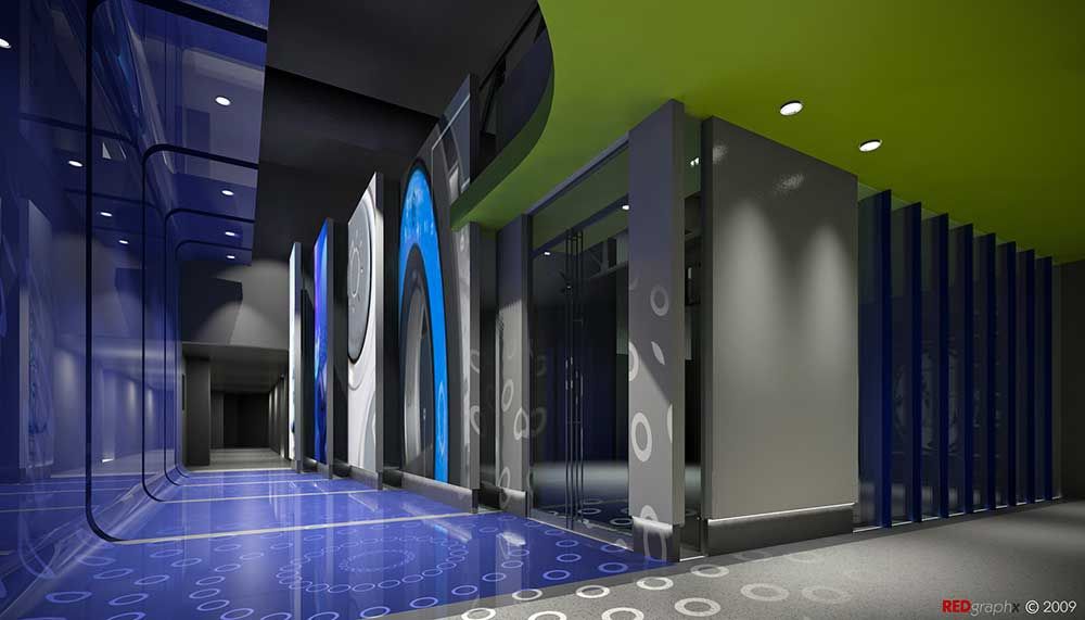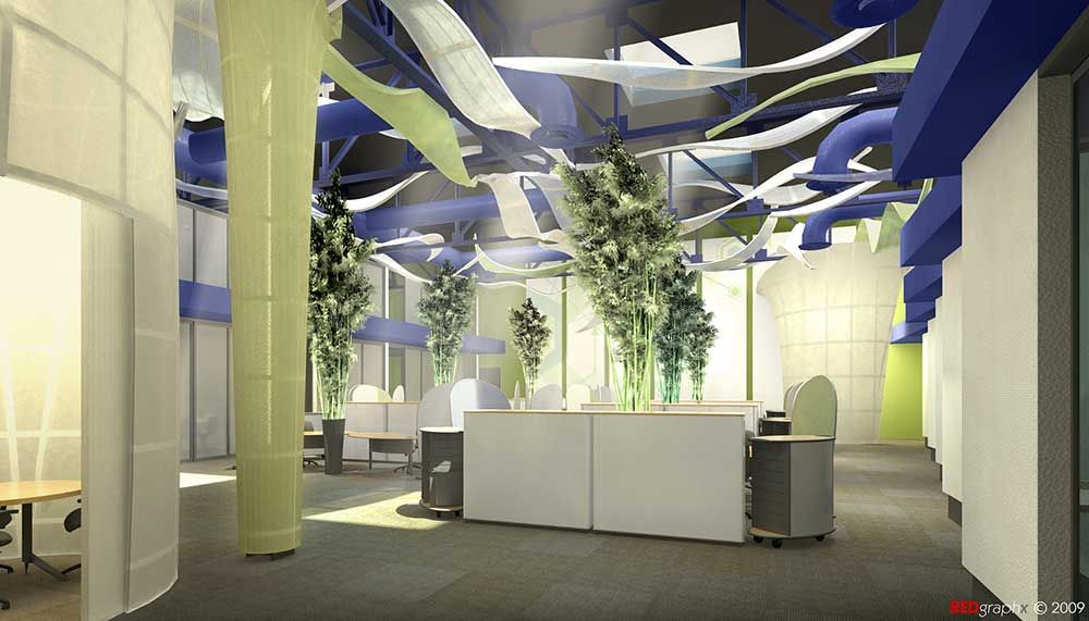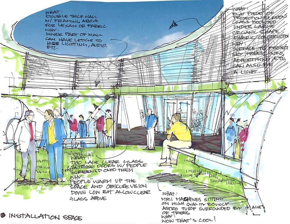 GE Destination Innovation (with Zimmerman Architectural Studios): This interior alteration project (twice planned in separate GE Healthcare WI campuses) is intended to provide internal & external clients a showroom, collaboration space for the GE Global Design staff to exercise their trade. The projects included new skylight systems and digital projectors used as message providers.