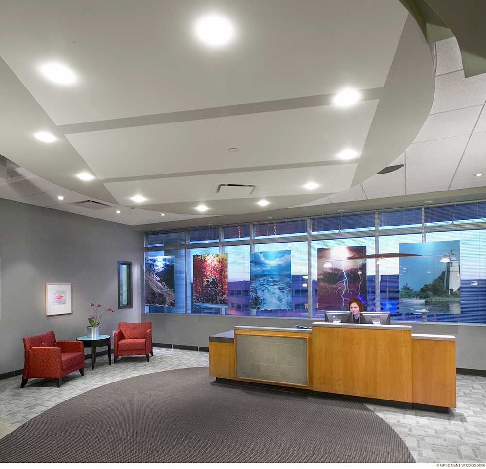 Markel American Insurance, Pewaukee, Wisconsin (with Zimmerman Architectural Studios): This corporate relocation of a speciality specialty insurer included a large mission critical data facility, generator and UPS system. The interior design was awarded an American Society of Interior Designers (ASID) award.