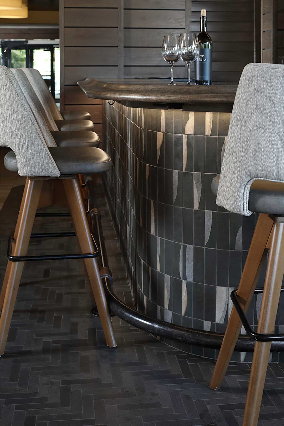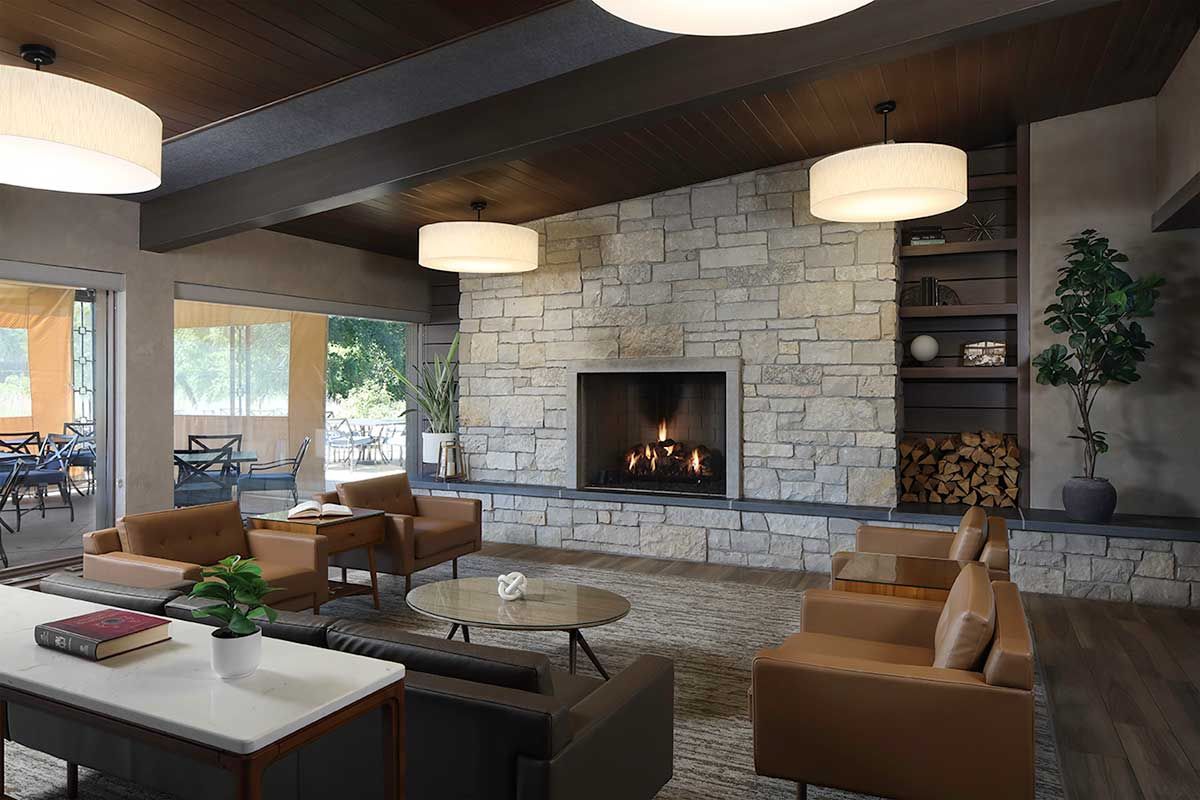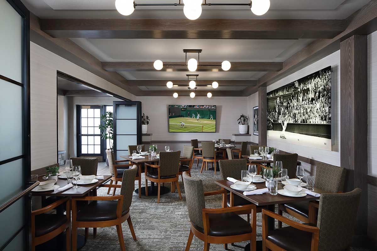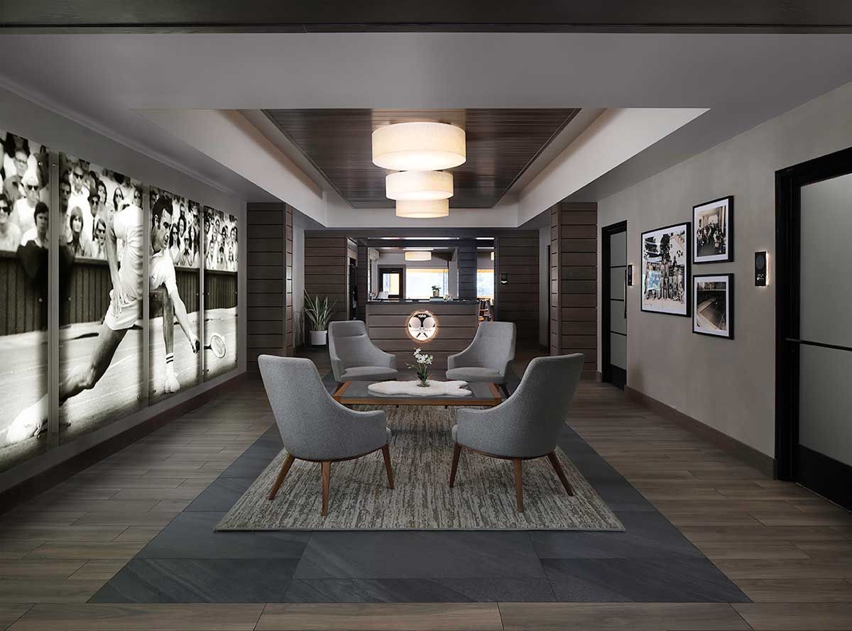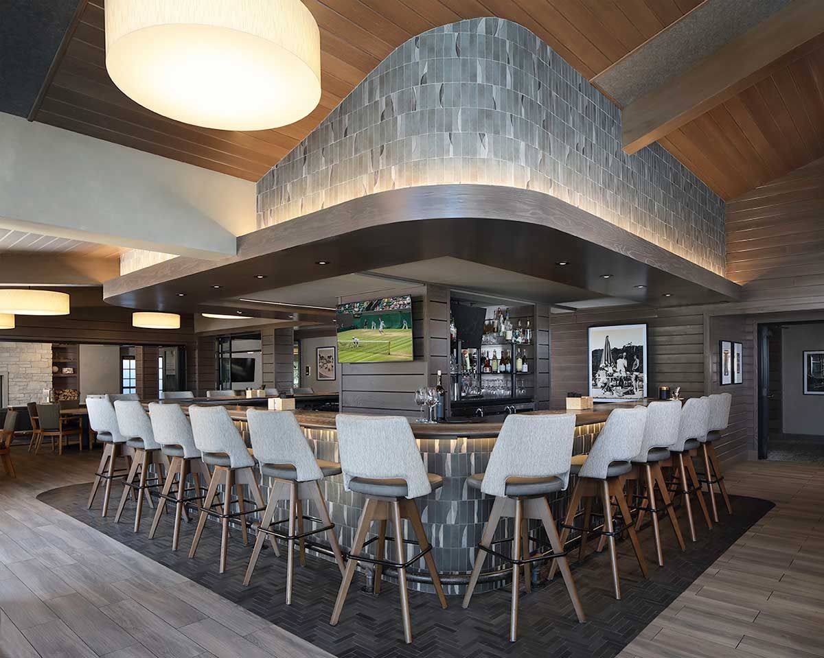 Complete public space mid-century modern alteration to a private recreation club in Elm Gove WI.