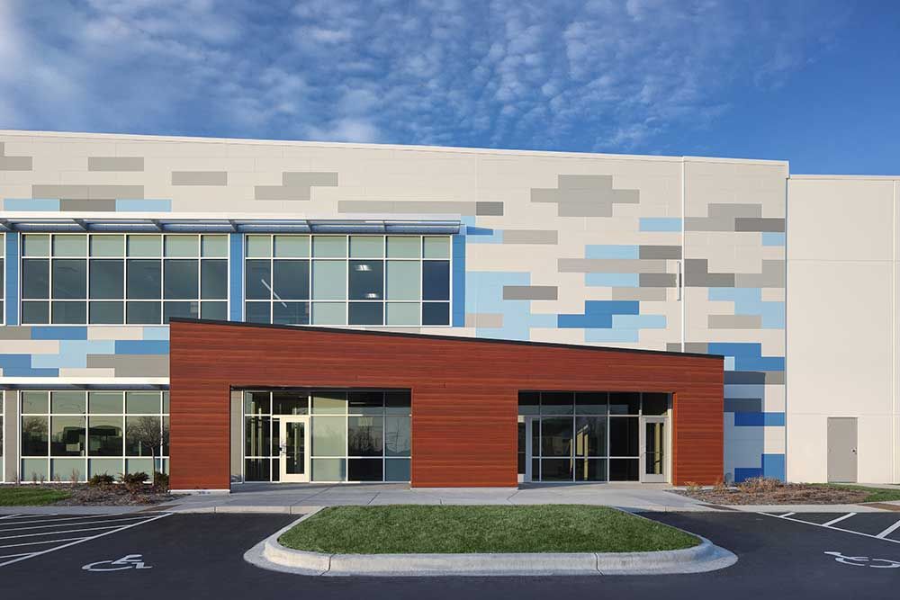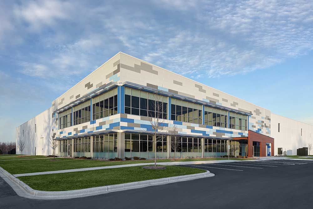 (160,000 s.f. new construction) Discount Ramps relocated their highly successful manufacturing and distribution business from multiple outdated facilities to a newly developed, design-build-sale-lease back location in the Village of Germantown, WI. The building features nearly 30 foot of clear height in the warehouse protected by an ESFR sprinkler system, two story open office concept with a website photography studio. The office area construction features a proprietary fiber cement board cladding as well as a proprietary extruded aluminum simulated wood siding system.