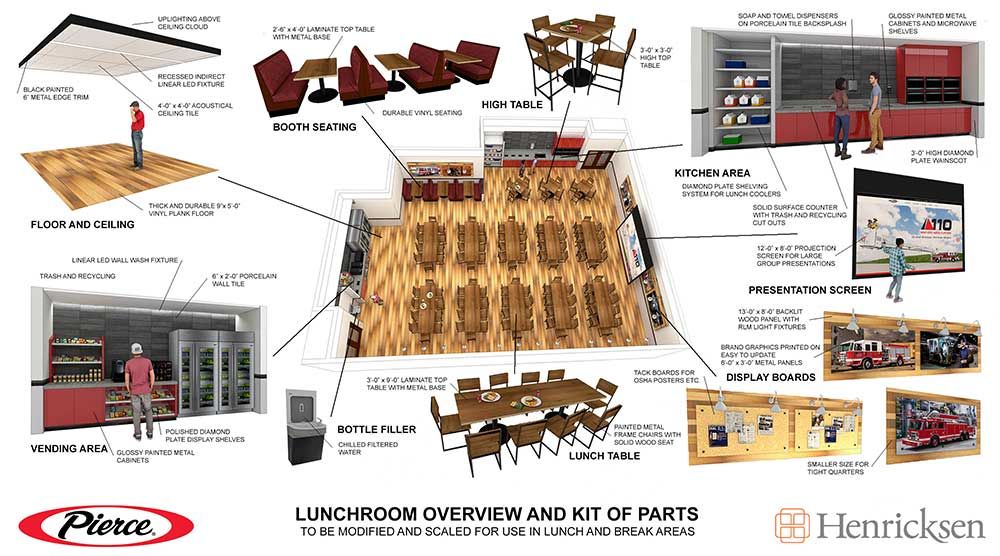 (multiple toilet, locker, shower and break areas) Pierce Manufacturing, the Global leader in firefighting equipment selected the Henricksen - Consortium ae LLC team on an initial café/break area alteration project in their two main Appleton WI manufacturing facilities. After successful completion of these two project, Pierce has moved forward to upgrade six more employee facilities in their two main Appleton manufacturing facilities. The Consortium ae continues work on the Pierce campuses today with multiple office alteration projects, accessibility and facility modernization upgrades.