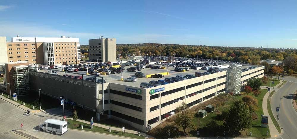 Froedtert Parking Structure #3 Vertical Expansion, Milwaukee, Wisconsin (with Zimmerman Architectural Studios): An interesting project which involved adding 1.5 tiers of parking to an existing parking structure, and extending the elevator & egress stair to the new tiers while keeping much of the parking available to staff & patients on a daily basis. This 133,000 SF vertical expansion added 427 parking spaces to the precast parking structure.